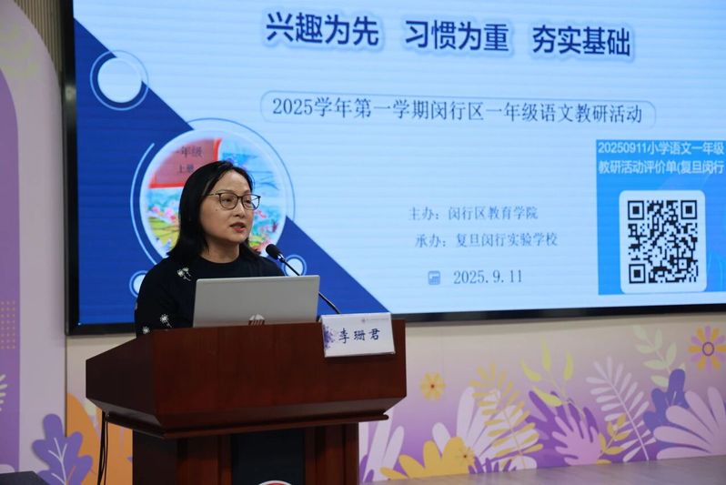 9月11日下午,主题为“兴趣为先,习惯为重,夯实基础”的闵行区一年级语文教研活动在上海市复旦大学附属闵行实验学校举行。本次活动由闵行区小学语文教研员李珊君老师主持,全区一年级语文教师参加了此次活动。