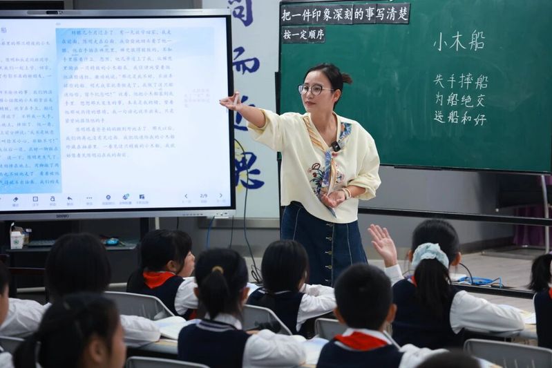 我校翁晓霞老师执教统编版语文四年级上册第五单元习作例文《小木船》一课。在教学中,翁老师紧扣“先写后教、例文引路、读写融合”的习作教学策略,围绕“把事情写清楚”的核心目标分层突破:以《小木船》为范本,引导学生梳理“围绕中心选内容”的逻辑;针对“写清重要内容”,挖掘“语言、动作描写展现人物互动”的写作技巧;通过同桌互评让学生实操优化方法。