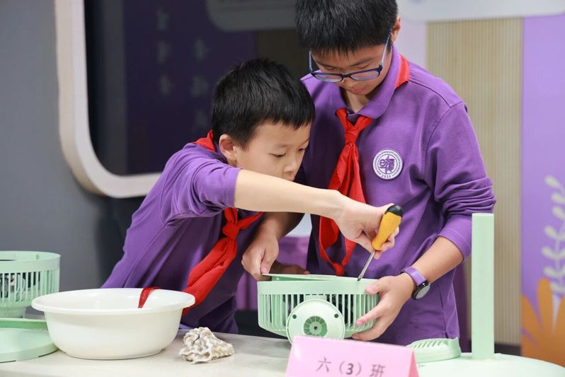 六年级以“‘扇’始‘扇’终,净享成功”为主题,挑战电扇“拆解→清洗→组装→收纳”全流程。同学们从拔电源、旋螺丝到清死角、巧组装,每一步都贴合生活服务的职业逻辑。这种直面问题、分步解决的劳动体验,也帮助同学们建立了严谨的思维习惯,为未来适应社会、解决实际问题打下基础。